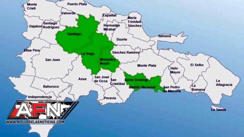 SANTO DOMINGO.- El Distrito Nacional y las provincias Santo Domingo, Santiago, La Vega y Monseñor Nouel fueron declaradas en alerta verde ante los aguaceros que se prevé se registrarán a partir de la tarde de este jueves.