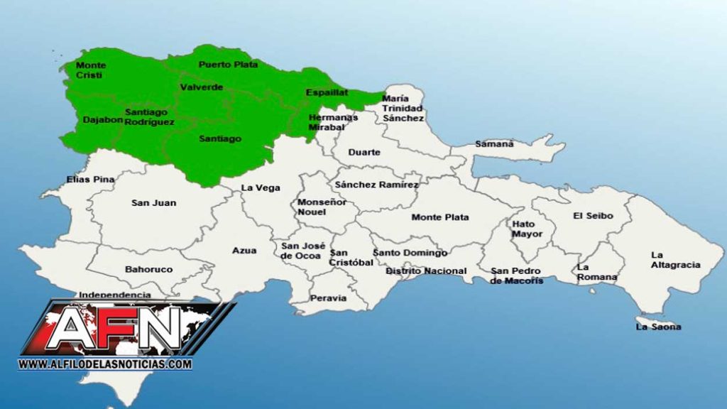 Las provincias en alerta verde son Santiago Rodríguez, Santiago, Valverde, Puerto Plata, Montecristi, Dajabón y Espaillat.