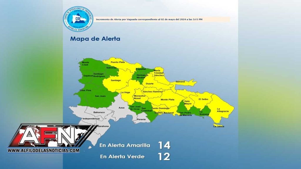 SANTO DOMINGO.- El Centro de Operaciones de Emergencias (COE) elevó a alerta amarilla a las provincias El Seibo y La Altagracia, que estaban en verde.