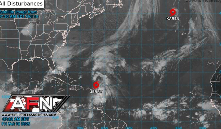 El Indomet dice que sigue monitoreando la tormenta tropical Jerry, localizada a unos 130 km al este/noreste de las islas de Sotavento del norte, Antillas Menores, con vientos máximos sostenidos de 85 km/h. Se desplaza hacia el noroeste a 28 km/h. “Por su posición geográfica, estamos atentos a la evolución y desarrollo de este sistema meteorológico”.