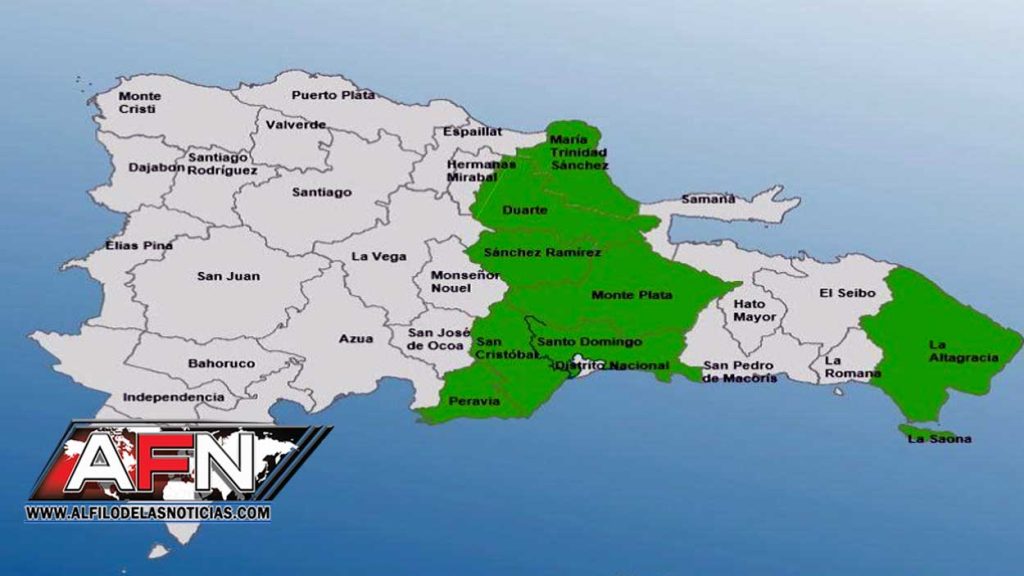 La información fue compartida a través de un comunicado, en el que también informó que las localidades alertadas son Santo Domingo, San Cristóbal, Sánchez Ramírez, Peravia, Monte Plata, Duarte, María Trinidad Sánchez y La Altagracia.