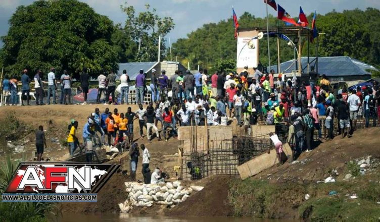 A pesar del perjuicio para Haití, que vive una grave crisis sociopolítica, económica y de violencia, la gente de la frontera canta y baila junto al canal a orillas del río Masacre.