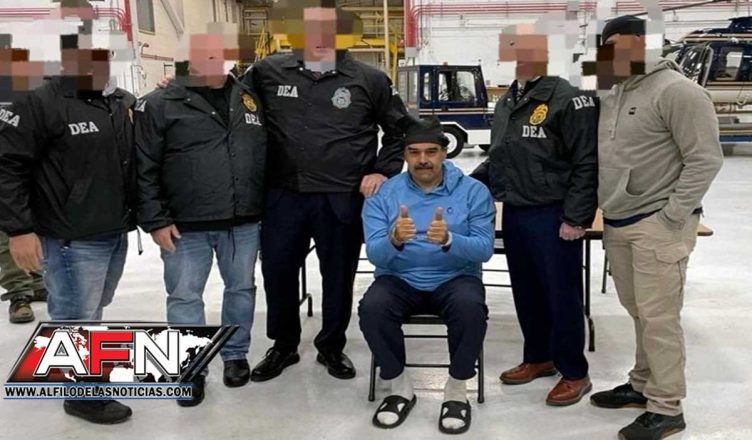 En las imágenes, Maduro aparece con una sudadera negra con capucha, caminando por un pasillo con alfombra azul que lleva la inscripción “DEA NYD”.