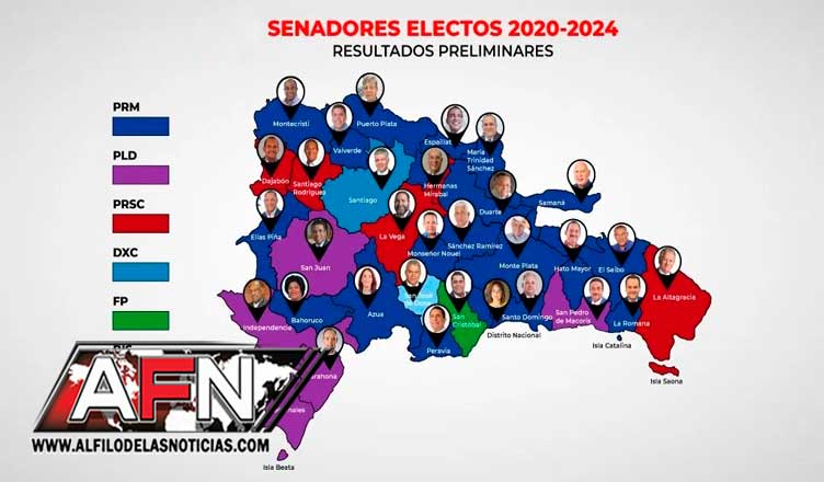 De su lado el PRM hasta el momento va ganando en 20 provincias, la Fuerza del Pueblo en una, Bloque Institucional Social Demócrata (BIS), una, y el Partido Reformista Social Cristiano (PRSC) y aliados, cinco.