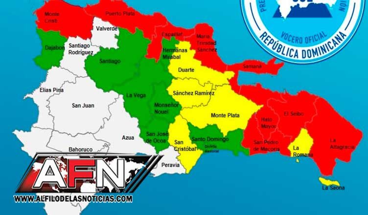 Mientras que en alerta amarilla se encuentran San Cristóbal, Sánchez Ramírez, Monte Plata, La Romana y Duarte.