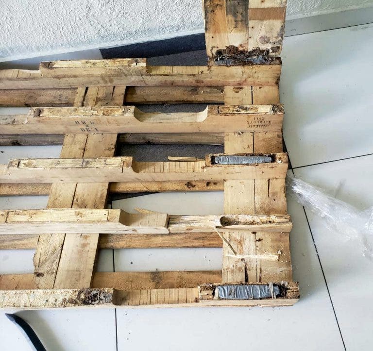 La droga estaba incrustada en dos paletas de madera y serían enviadas a Estados Unidos en una caja,  conteniendo un juego de aros para vehículos, tuercas, luces y un forro para asientos color gris.