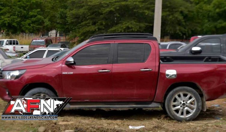 Varias horas después del atraco, agentes de la Policía Nacional localizaron el vehículo, una Toyota Hilux, color rojo, placa No. L344321, abandonado en el distrito municipal Canca La Reyna, en la provincia de Espaillat.