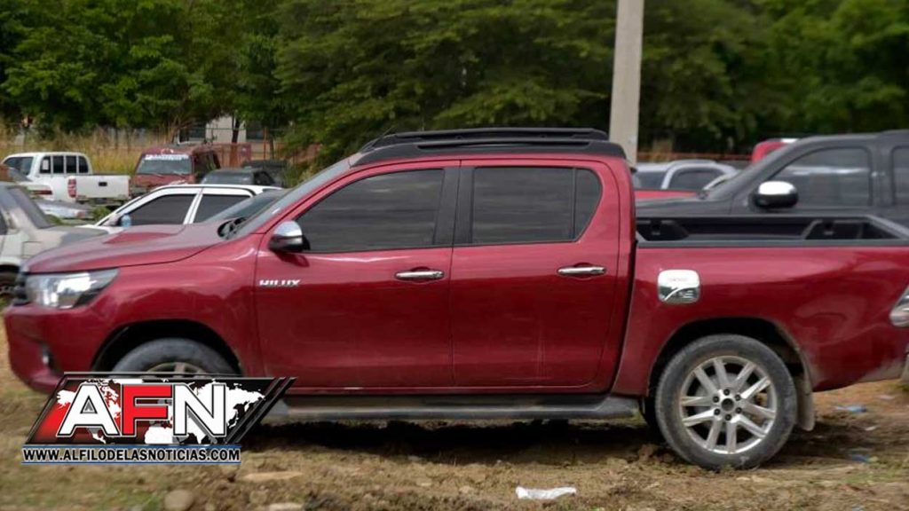 Varias horas después del atraco, agentes de la Policía Nacional localizaron el vehículo, una Toyota Hilux, color rojo, placa No. L344321, abandonado en el distrito municipal Canca La Reyna, en la provincia de Espaillat.