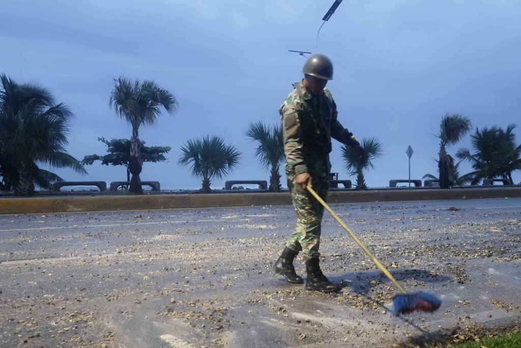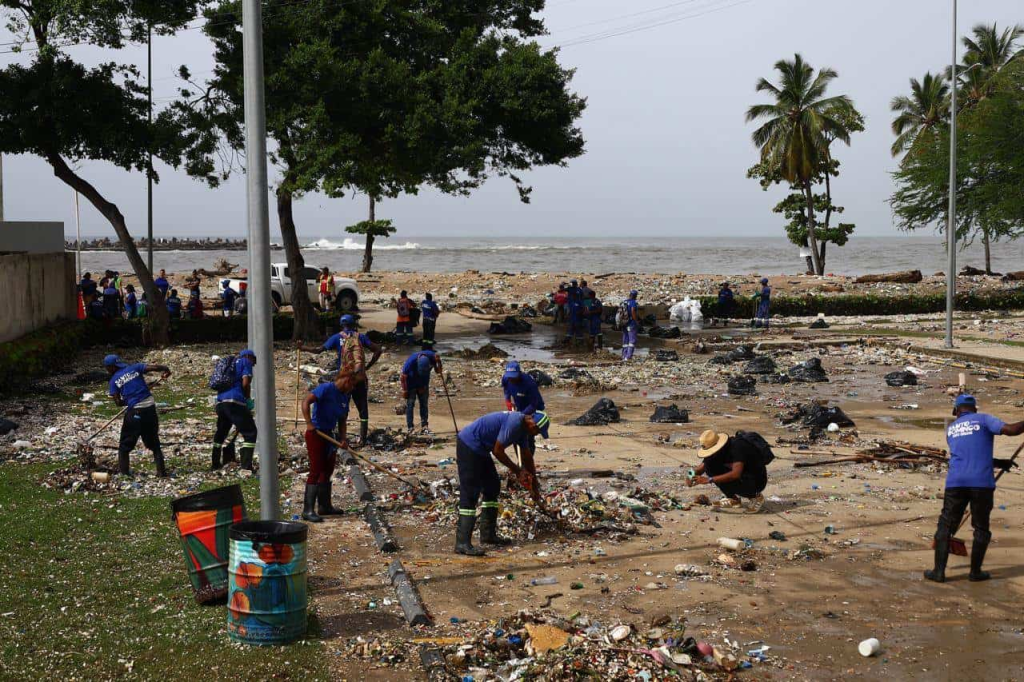 El oleaje del poderoso huracán provocó que la avenida del Malecón en Barahona fuera obstruida por escombros, dificultando el tránsito, aunque luego la vía fue despejada.