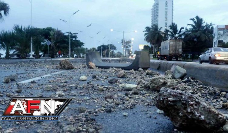 También la avenida del Malecón fue obstruida por escombros, dificultando el tránsito, por lo que las autoridades municipales procedieron al despeje de la vía.