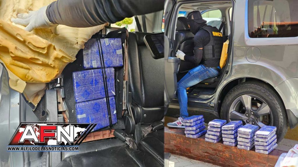 Posteriormente, por instrucciones de los fiscales actuantes, el detenido y el vehículo fueron trasladados a la sede central de la DNCD, donde se realizó una inspección más rigurosa, encontrando encaletados en el interior de los asientos delanteros y traseros del vehículo, un total de 35 paquetes de la sustancia.