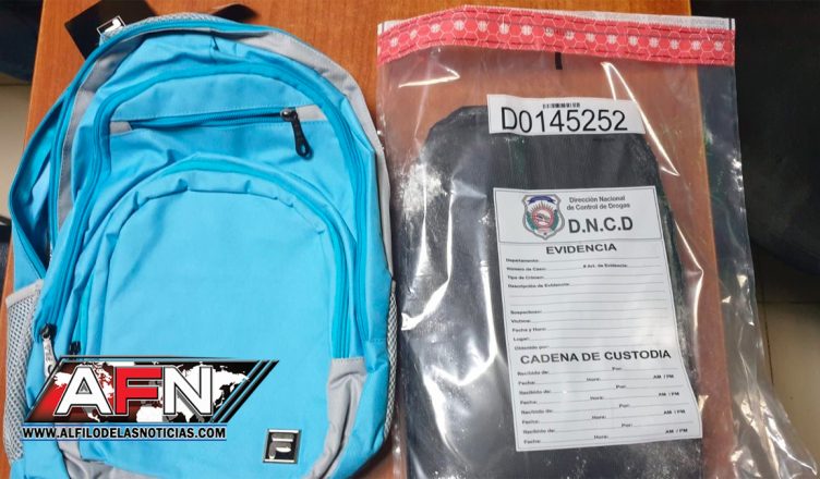 Los agentes de la DNCD y miembros de agencias de inteligencia, procedieron a inspeccionar el equipaje, encontrando una mochila con un doble fondo, donde se incautó una lámina con un peso preliminar de 2.83 kilogramos, de un polvo que aparenta ser cocaína.