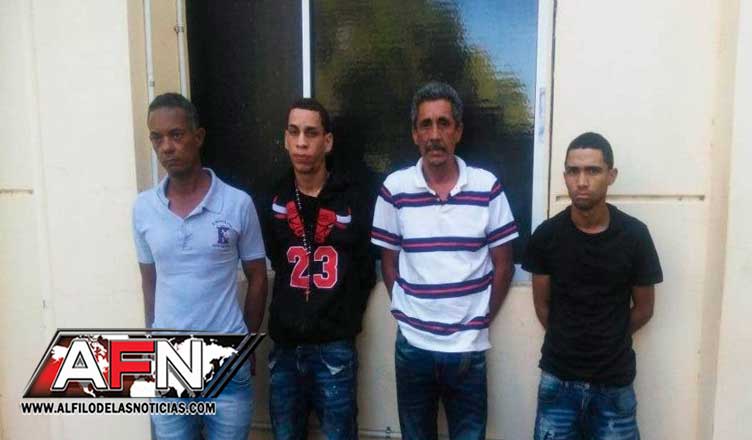 El informe policial indica que los apresados son Rafael de Jesús Sánchez, Gerson Antonio Vargas, Gilbert Garibaldy Jiménez Cabrera y Gilberto Antonio Jiménez Rodríguez, ocupándoles a los dos últimos 20.4 gramos de presunta marihuana y 18.3 gramos de un polvo blanco, presumiblemente cocaína.