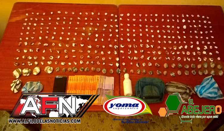 Según la DNCD, los agentes ocuparon un bolso de color azul conteniendo dentro de una funda plástica 120 porciones de cocaína con un peso aproximado de 214 gramos, así como una botella plástica conteniendo 189 porciones de la misma sustancia con un peso de 68 gramos.