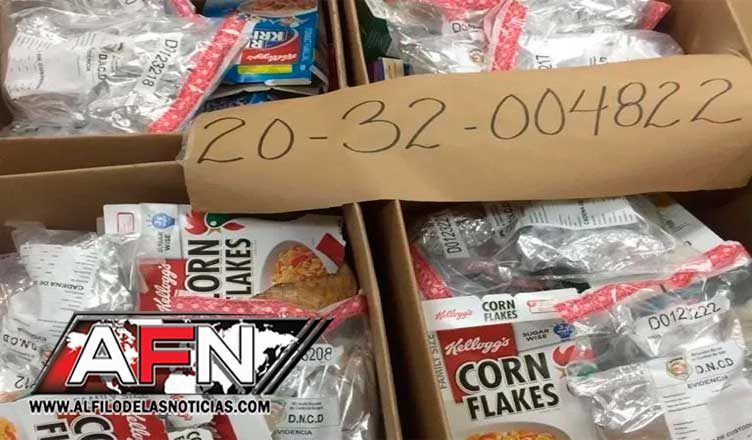 Mediante un comunicado la DNCD indicó que la droga. empacada en 218 bultos de cajas y tanques de alimentos y enlatados varios, fue incautada en coordinación con el Ministerio Público y la Dirección General de Aduanas.