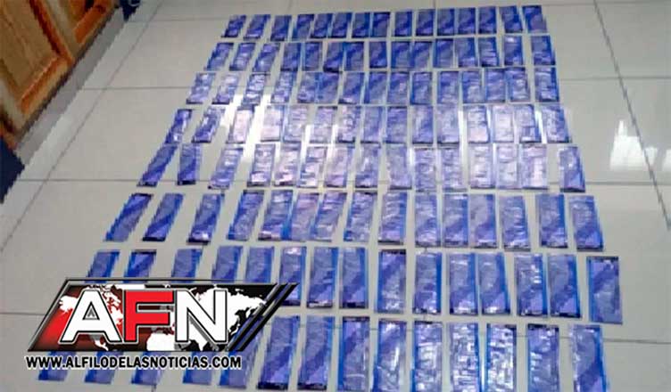 La droga estaba oculta en 191 porta navajas, forradas en plástico transparente, las cuales fueron halladas escondidas en un doble fondo hecho con dos (2) stickers color morado y blanco con borde negro, que simulaban la etiqueta de las citadas porta navajas.