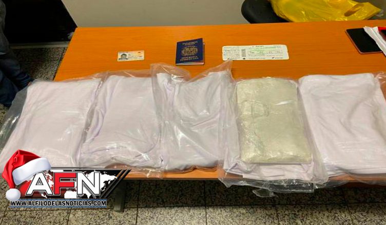 Los agentes antinarcóticos, militares y miembros de agencias de inteligencia destacados en la terminal, detuvieron en el área de chequeo a una joven de 22 años, que intentó llevar en su equipaje los cinco paquetes de la sustancia a Madrid, España.