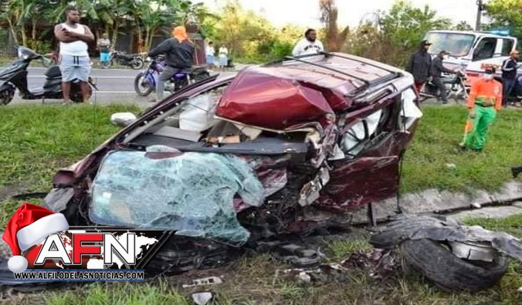 SAN CRISTÓBAL.- Dos personas fallecieron de manera instantánea y cuatro resultaron heridas en un accidente ocurrido la mañana de este domingo en la autopista Duarte próximo al hotel Puerta Blanca detrás del barrio Duarte, Villa Altagracia.