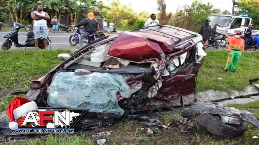 SAN CRISTÓBAL.- Dos personas fallecieron de manera instantánea y cuatro resultaron heridas en un accidente ocurrido la mañana de este domingo en la autopista Duarte próximo al hotel Puerta Blanca detrás del barrio Duarte, Villa Altagracia.