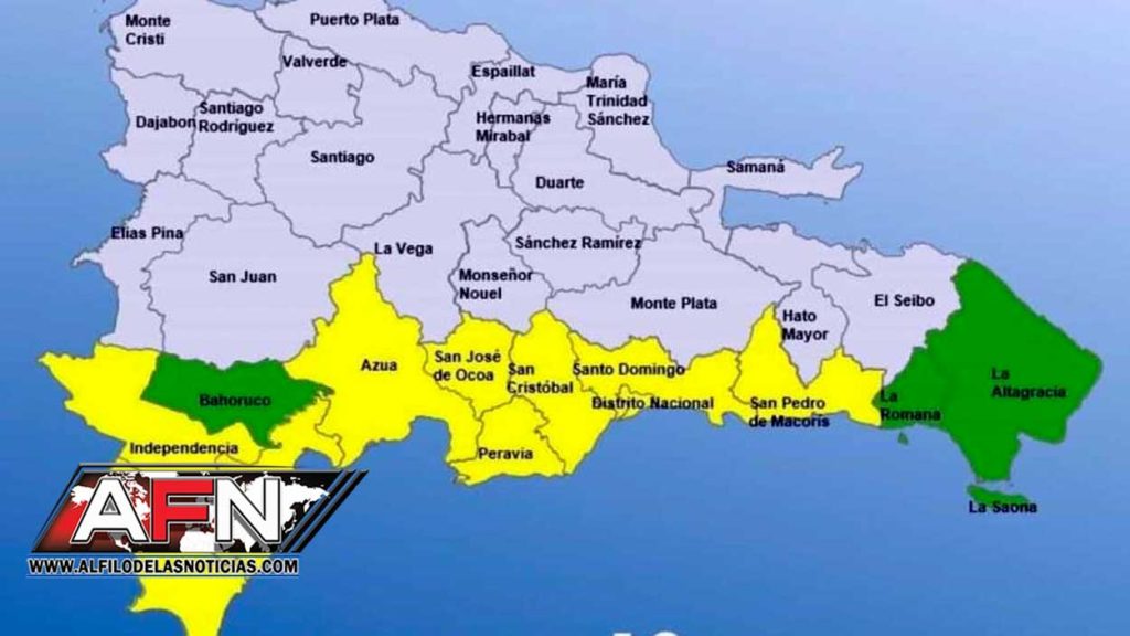 En alerta amarilla están: Barahona, Pedernales, Independencia, Azua, San José de Ocoa, San Cristóbal, Peravia, Santo Domingo, Distrito Nacional y San Pedro de Macorís.
