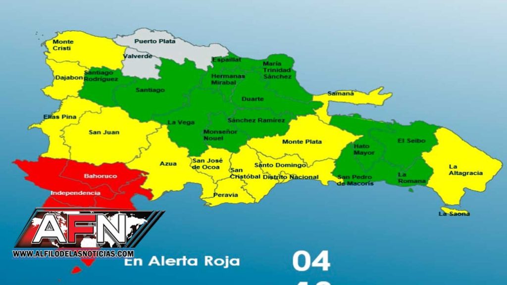 En ese sentido, se mantienen en alerta roja, Barahona, Pedernales, Independencia y Bahoruco.