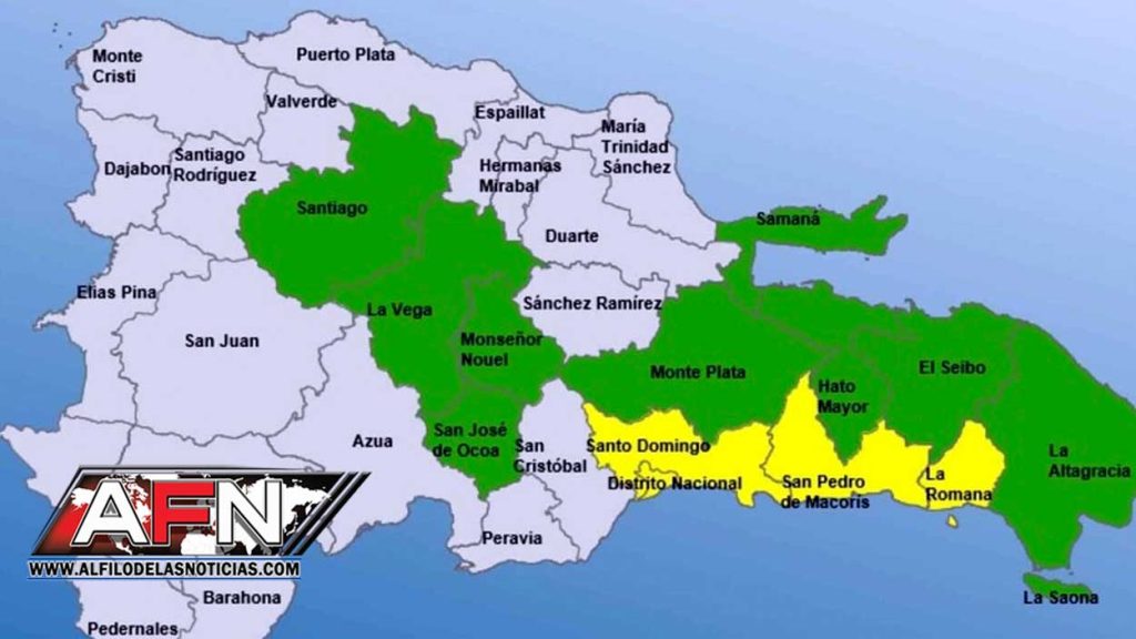 En tanto, el organismo informó que descontinuó la alerta verde para Sánchez Ramírez, Duarte, Espaillat, Hermanas Mirabal y María Trinidad Sánchez.
