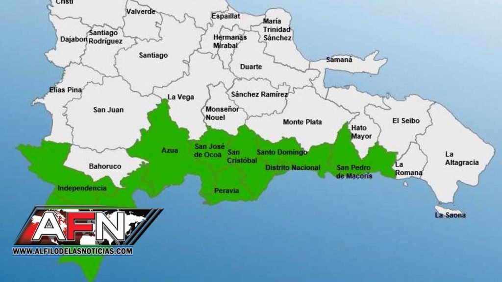 Las provincias en alerta verde son Peravia, Pedernales, Barahona, Independencia, Azua, San Cristóbal, San José de Ocoa, San Pedro de Macorís y Santo Domingo.