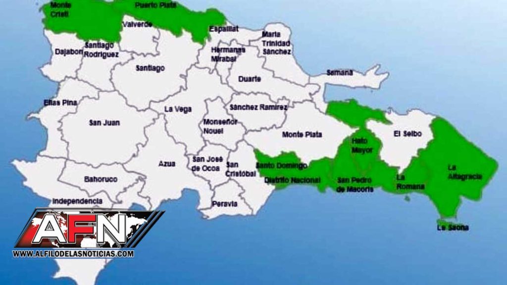 Debido a los aguaceros que se prevén, el Centro de Operaciones de Emergencias (COE) colocó el Distrito Nacional y siete provincias en alerta verde. En alerta se encuentran las provincias: Santo Domingo, Puerto Plata, San Pedro de Macorís, Hato Mayor, Montecristi, La Romana y La Altagracia.