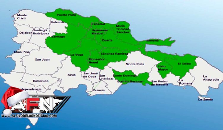 Las provincias en alerta verde son: Santo Domingo, María Trinidad Sánchez, Espaillat, Santiago, Samaná, Hermanas Mirabal, Hato Mayor, Duarte, Puerto Plata, El Seibo, La Vega, Monseñor Nouel y Sánchez Ramírez.