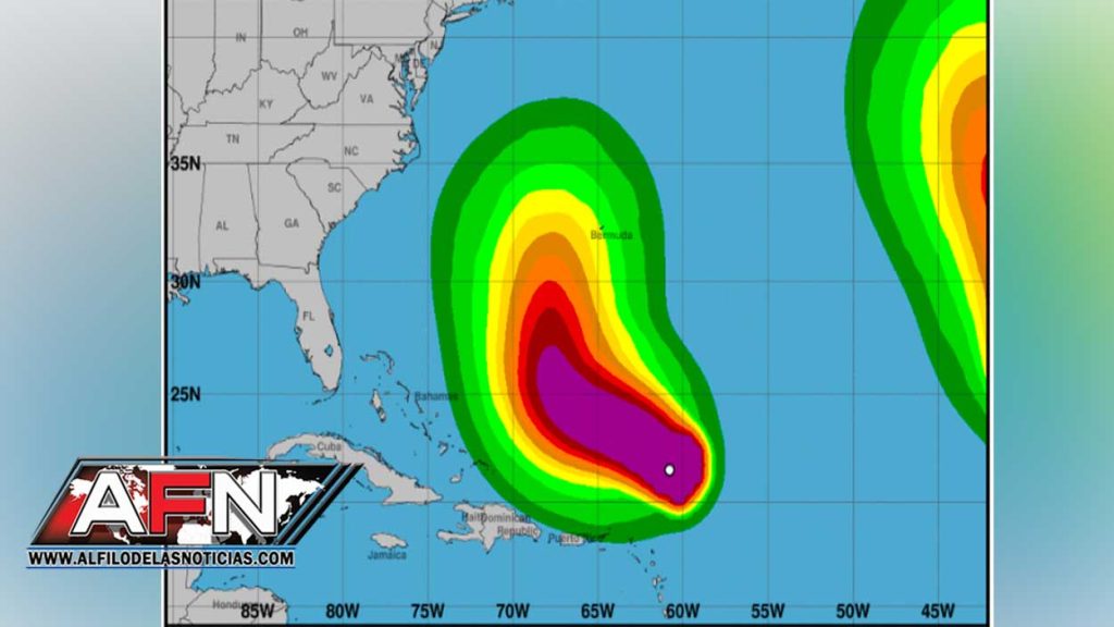 El organismo apuntó que «olas rompientes peligrosas y corrientes marinas que amenazan la vida están afectando las Islas de Sotavento del norte, las Islas Vírgenes británicas y estadounidenses, Puerto Rico, La Española, las Islas Turcas y Caicos, las Bahamas y Bermuda».