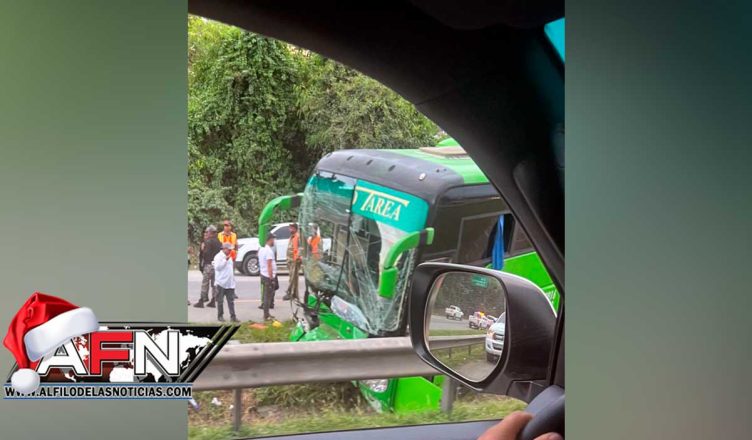 SANTO DOMINGO.- La empresa Tarea Bus lamentó que un autobús de su propiedad que se dirigía desde Bonao a Santo Domingo, en el kilómetro 26, próximo a Pedro Brand, haya estado envuelto en un accidente a causa de que individuos vestidos de negro y en una jeepeta, se le atravesaron a un vehículo en alta velocidad y provocaron un choque múltiple con una patana.