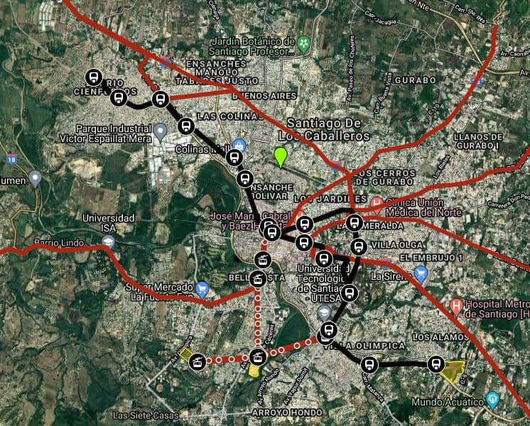 Para la estación 10, pautada en la avenida 27 de Febrero esquina avenida Imbert, se tendrían que comprar terrenos donde hay viviendas. Lo mismo para la estación 11, en la avenida Circunvalación, en el Consorcio de Zonas Francas de Santiago; en la estación 12, en la misma avenida esquina avenida Tamboril; y en la última estación, en la Tamboril y avenida Circunvalación Norte, en Cienfuegos.
