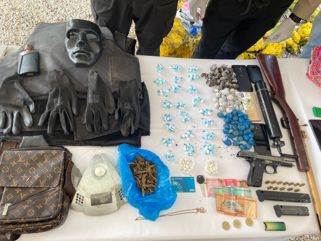 SANTO DOMINGO. – En el operativo donde la Policía Nacional y la Dirección Regional Este ultimaron este jueves en un supuesto intercambio de disparos un alegado delincuente, ocuparon varias armas de fuego, drogas, chalecos antibalas, celulares entre otros objetos utilizados para cometer los hechos delictivos.