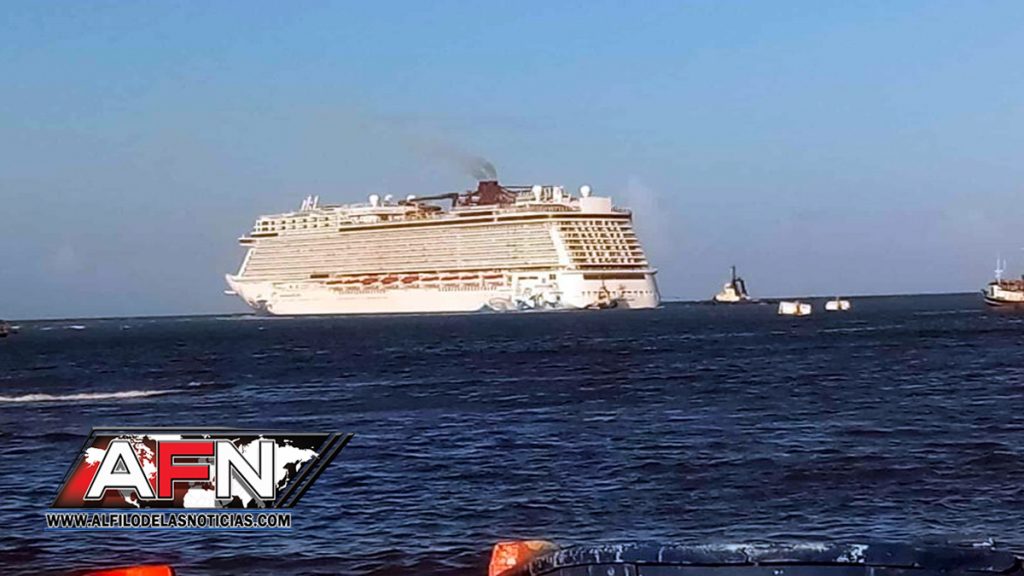 PUERTO PLATA.- Un crucero con cientos de turistas encalló la tarde de este lunes en el muelle Taino Bay, de Puerto Plata, al intentar salir de la costa Norte.