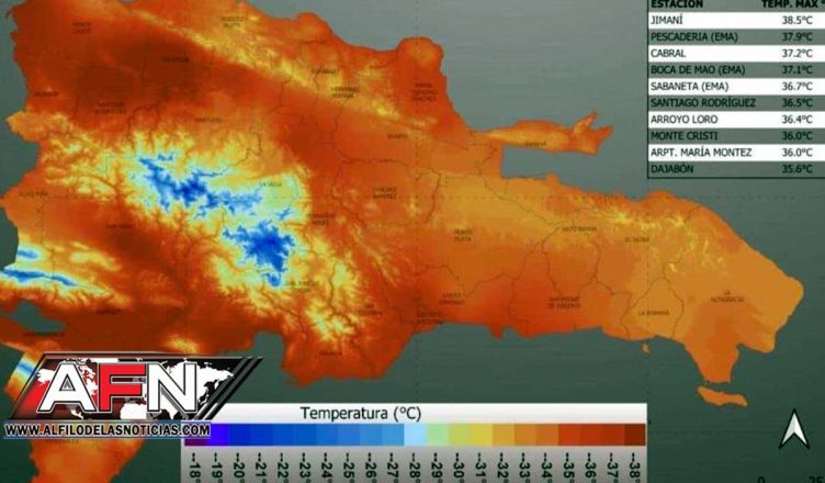 Otras zonas han estado registrando temperaturas superiores a las del Gran Santo Domingo, especialmente en el suroeste donde en Jimaní (Independencia) el pasado miércoles hubo una máxima de 38.5 °C y en la Línea Noroeste, como en Sabaneta (Santiago Rodríguez), 38 °C el martes.