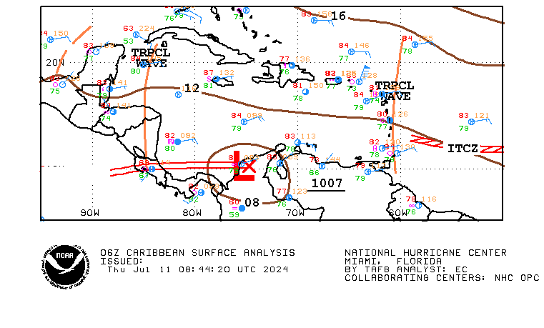 Asimismo, la Onamet informa sobre una vaguada asociada a una zona de baja presión, la cual está produciendo aguaceros con tormentas eléctricas de manera desorganizada, localizada a pocos cientos de kilómetros de la costa sureste de los Estados Unidos, se mantiene con un potencial del 10 % para desarrollarse en ciclón tropical en las próximas 48 horas.