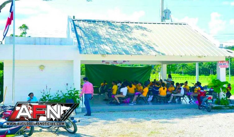 PERTO PLATA.- Alrededor de 500 estudiantes de la comunidad de Comú en el municipio de Sosúa, provincia Puerto Plata, reciben docencia en aulas improvisadas en un club, así como en marquesinas de casas de profesores.