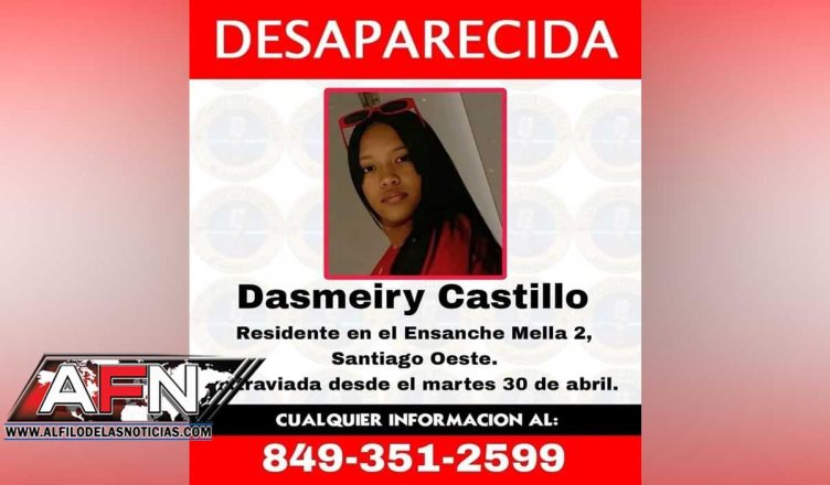 Se trata de Dasmeiry Castillo, residente en el Ensanche Mella 2, distrito municipal Santiago Oeste, quien fue vista por última vez con un pantalón jean corto color azul, un polocher blanco y zapatillas color blanco.