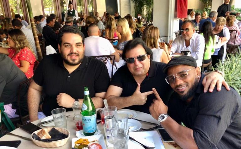 De izquierda a derecha, Rodolfo Dauhajre, Presidente de Fighting Force, Domingo Dauhajre, y el peleador de la UFC Yoel Romero, en un restaurante en la ciudad de Miami, FL.