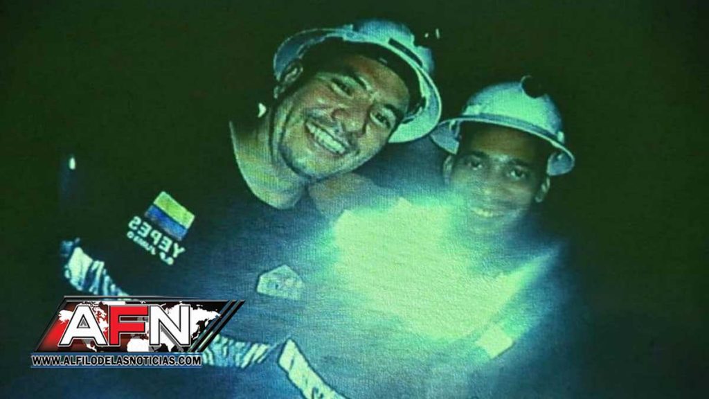 Son tres fotografías. En una de ellas, los dos hombres están abrazados y sonrientes, y en las otras parece cada uno en solitario, pero sus rostros no muestran señales de decaimiento ni desánimo. Este martes el dominicano sostuvo una videollamada con familiares, para lo cual se introdujo el aparato por la tubería que llega hasta donde están atrapados.