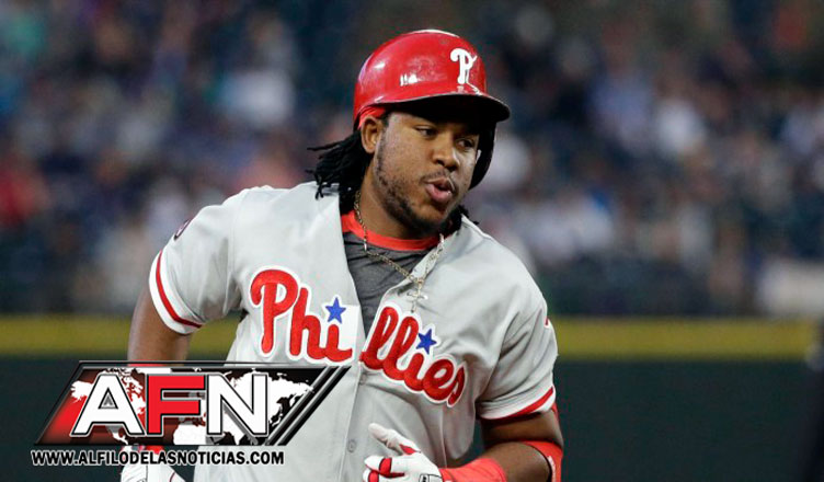 El toletero novato Rhis Hoskins fue excluido de la alineación titular de los Filis, luego de ser golpeado por un lanzamiento en la muñeca durante el encuentro del sábado.