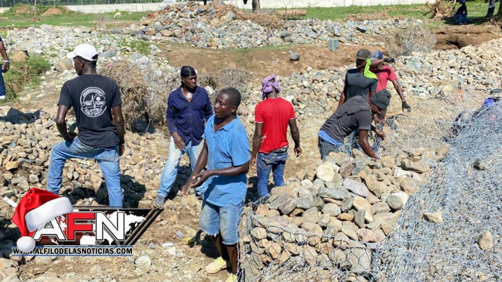 Decenas de los haitianos estuvieron la tarde de este jueves reparando los muros gaviones afectados por la fuerte creciente del afluente.