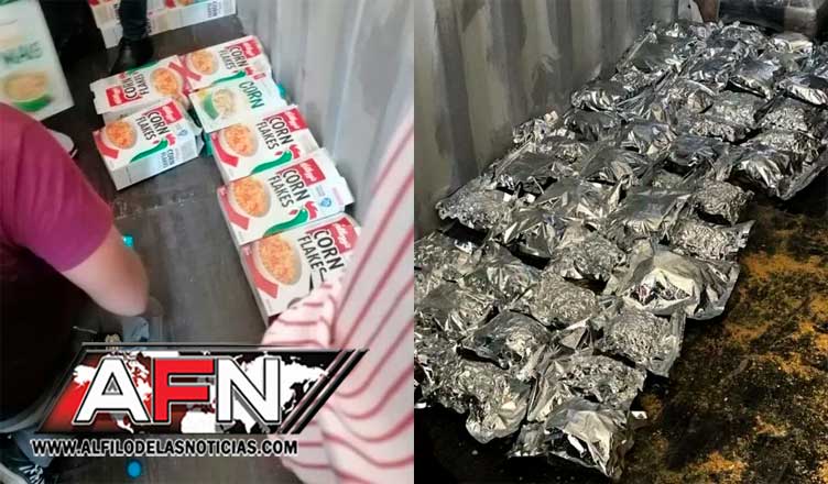 En el manifiesto de carga declarado figuraban 218 bultos de cajas y tanques de alimentos y enlatados varios, ropa para adultos y niños, electrodomésticos, colchones, bicicletas, un andador, sillas de ruedas usadas, colchones, inodoro y bómper de vehículo, los paquetes del vegetal se encontraban dentro de paquetes de cereales.