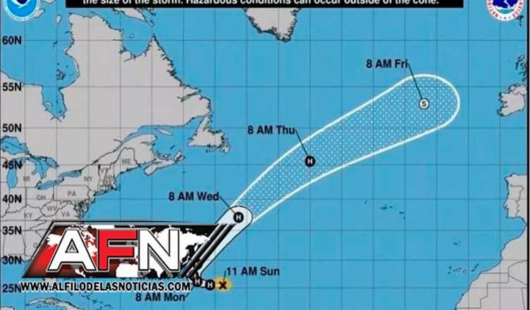 El octavo huracán de la temporada ciclónica en la cuenca atlántica se encuentra unas 590 millas (955 kilómetros) de distancia Bermudas y 605 millas (975 kilómetros) de las islas de Sotavento (Antillas Menores), indicó el NHC en su boletín de las 16.00 GMT de hoy.
