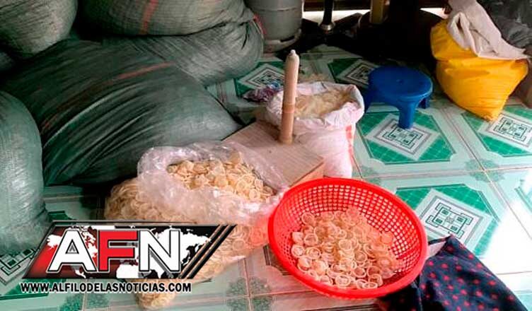 La Policía indicó que las bolsas repletas de profilácticos almacenadas en la fábrica pesaban más de 360 kilos, lo que equivaldría a unos 345.000 preservativos, que iban a ser preparados y distribuidos en el mercado.