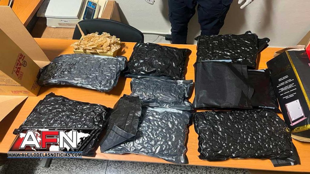 Inmediatamente, en presencia de un fiscal se inició el protocolo de actuación, encontrando distribuidas, en varios paquetes de cartón, ocho paquetes de la droga, con un peso total de nueve libras, destaca este jueves un comunicado.