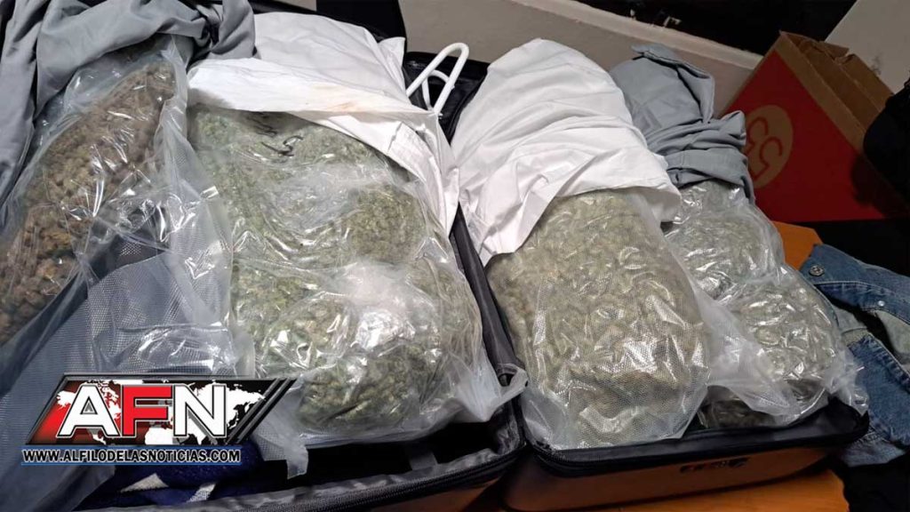 Según el informe de las autoridades, en presencia de un fiscal adjunto, se inició el protocolo de rigor y se procedió a abrir dos maletas, ocupando en una 20 paquetes, y en la otra 14, para un total de 34 paquetes del vegetal.