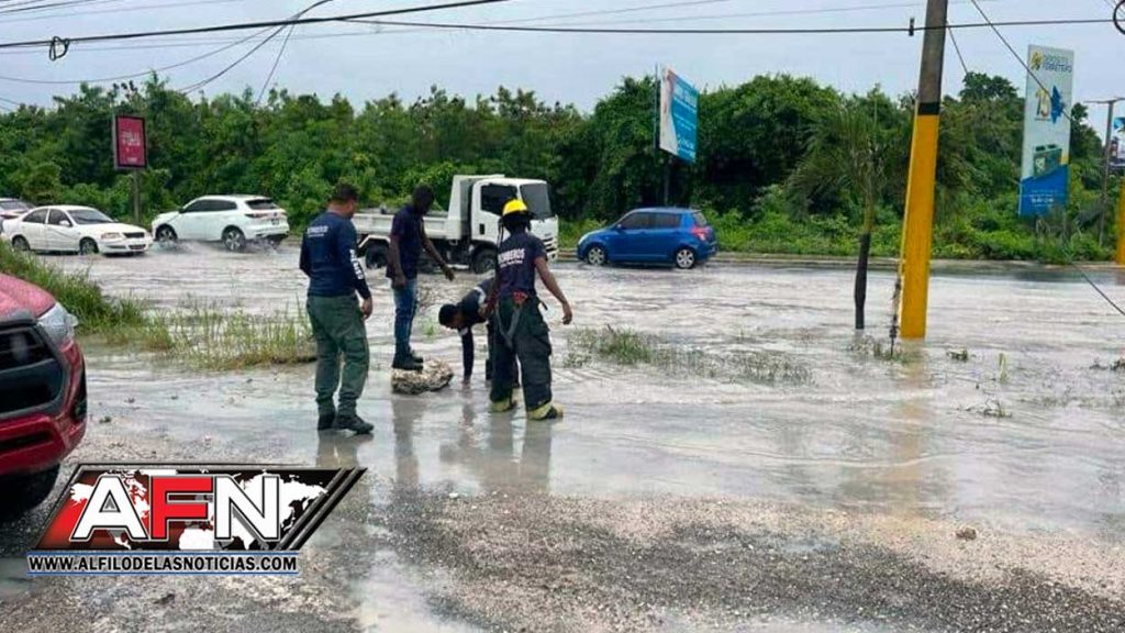 La Altagracia.- Las fuertes lluvias de las últimas horas en la provincia de La Altagracia provocaron inundaciones urbanas en los sectores de Barrio Nuevo, Friusa y Cabeza de Toro, en el distrito de Verón.