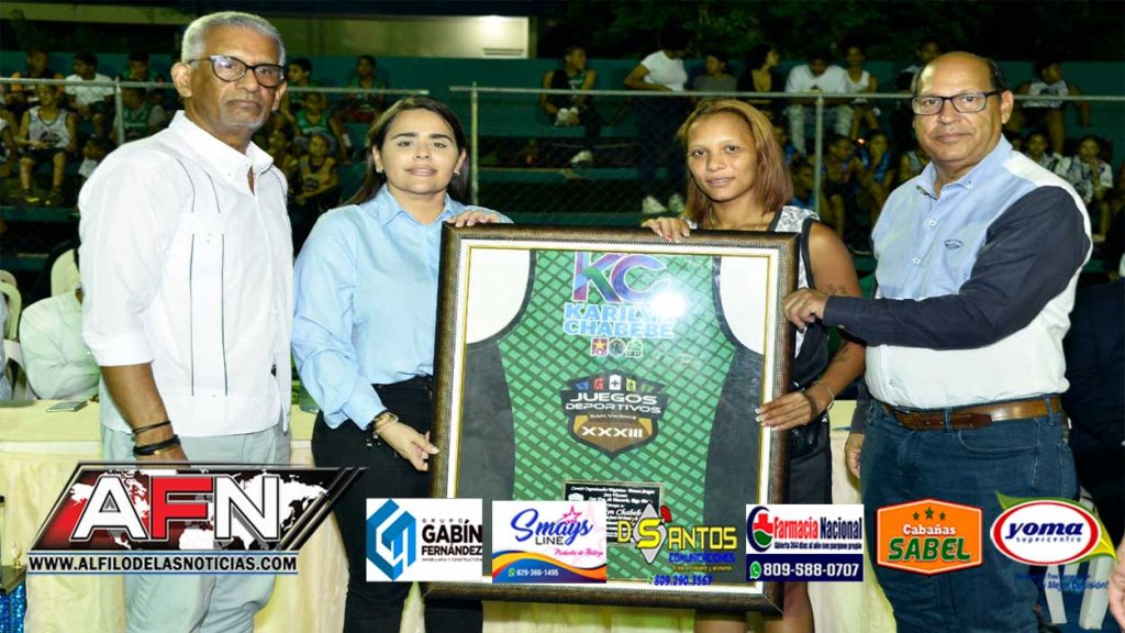 SAN FRANCISCO DE MACORIS.- Por sus amplios aportes al deporte en esta ciudad, la candidata a la alcaldía por la alianza Rescate RD, Karilyn Chabebe, recibió un reconocimiento por parte del Comité Organizador de los XXXIII Juegos Deportivos San Vicente.