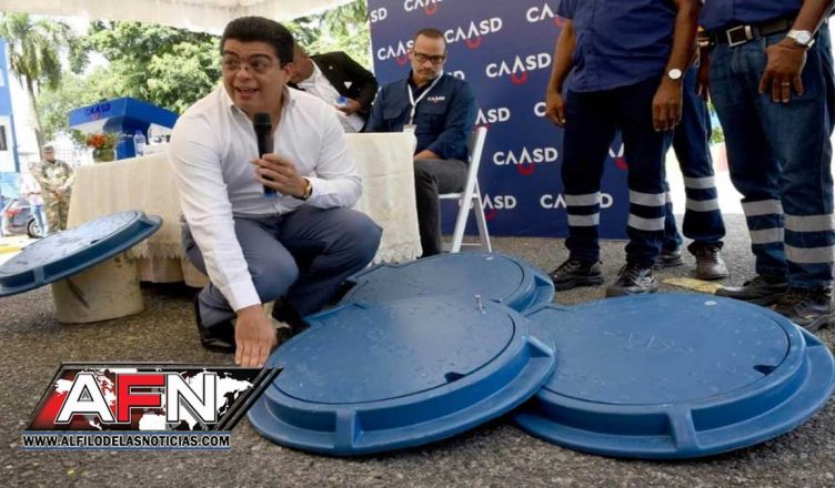 El director general de la Corporación del Acueducto y Alcantarillado de Santo Domingo (CAASD), Felipe Suberví, presentó las nuevas tapas que estarán siendo colocadas en los registros sanitarios del Gran Santo Domingo, construidas en fibra de vidrio reforzado para evitar que sean sustraídas por desaprensivos, como ocurre actualmente con las de hierro fundido.